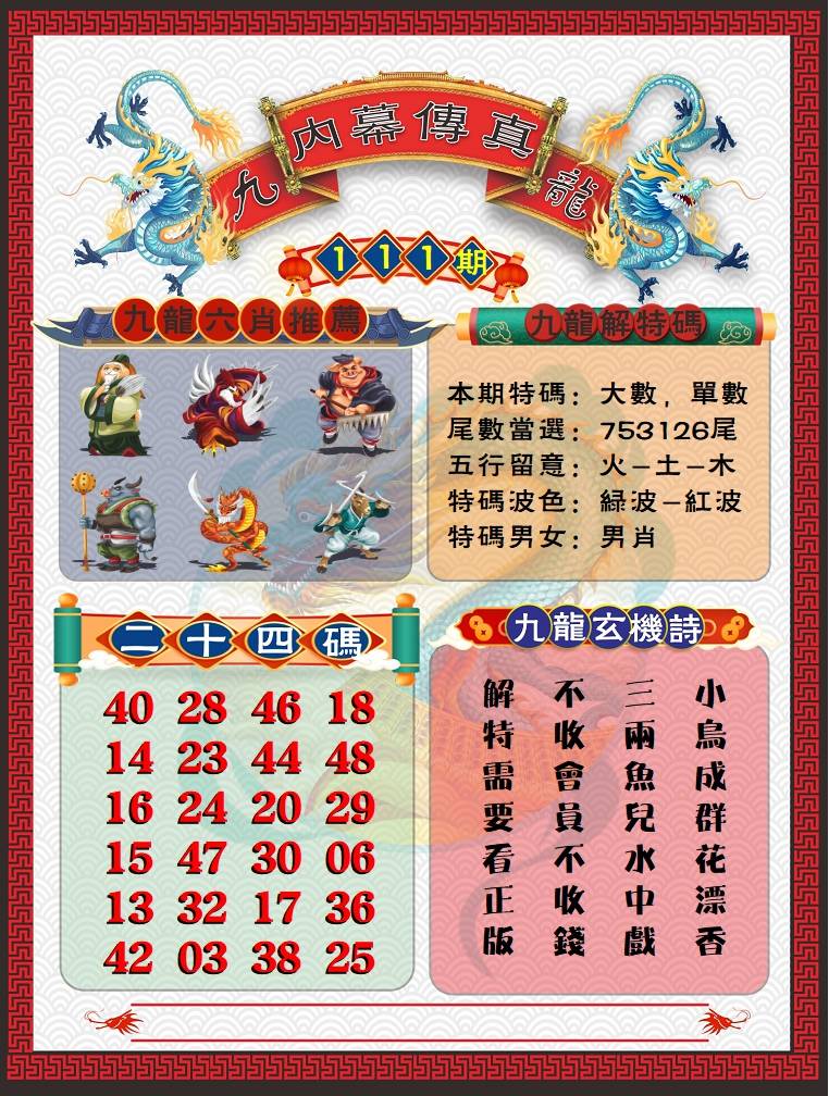 | 111期推荐⑤肖: 鸡猪蛇虎狗 -平均压 |